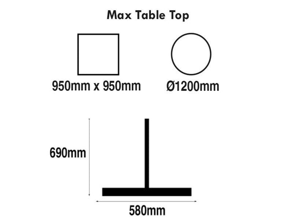 - Max Square Top Size: 850 x 850mm